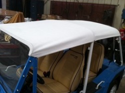 Produzione capote Austin Rover Mini Moke Portoghese/Cagiva ( 1985- 1996 ) CARATTERISTICHE CAPOTE: - tessuto vinile superiore doppio strato -colore esterno bianco - interno in cotone traspirante - cuciture con filo nautico resistente all' acqua